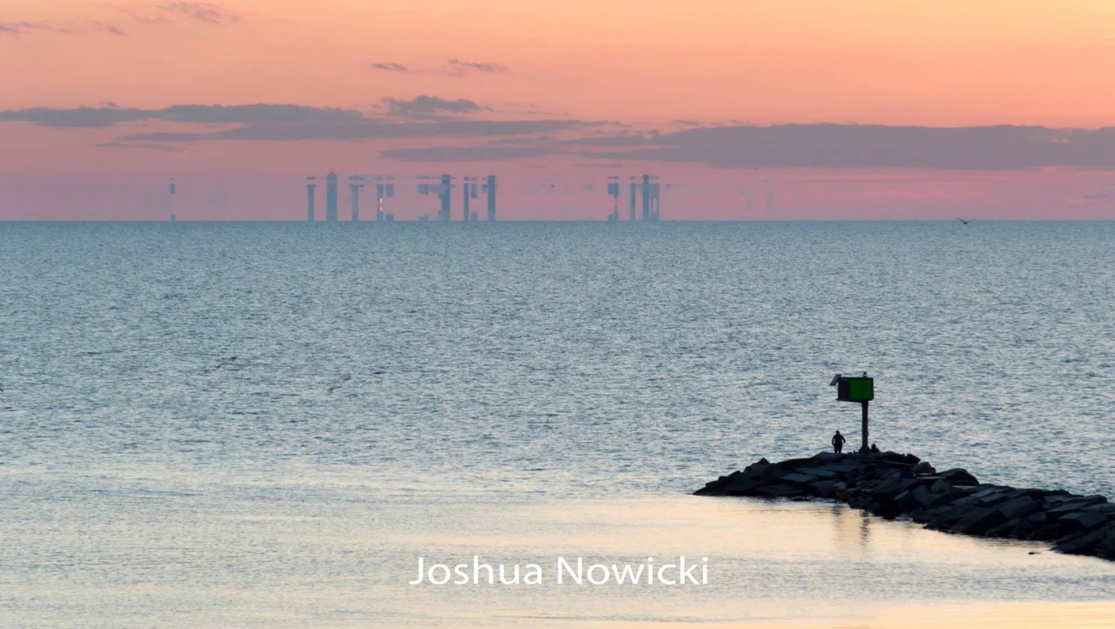One famous example: on clear days with the right atmospheric conditions, the Chicago skyline has been photographed from New Buffalo, Michigan — across Lake Michigan, roughly 90 km away — as a floating Fata Morgana image.