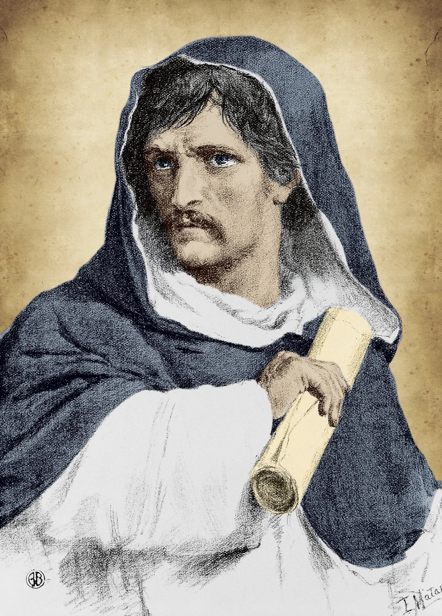 Giordano Bruno was born in Nola, near Naples, in 1548 — five years after De revolutionibus appeared. He joined the Dominican Order and trained in philosophy and theology, but almost immediately ran into trouble with the authorities. He read banned books — particularly Erasmus's critical biblical commentary — and had an inquisitive, combative temperament poorly suited to monastic life.