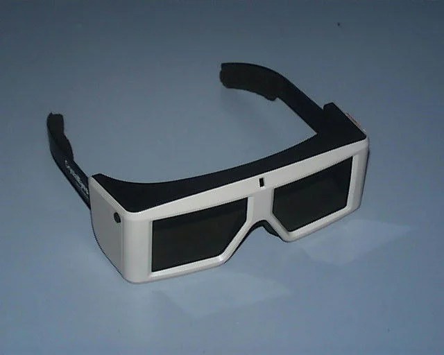 Rather than using polarization to separate the images, active shutter glasses use time: the screen alternates rapidly between left-eye and right-eye frames, and the glasses' lenses physically shutter — blocking one eye, then the other — in synchronization.